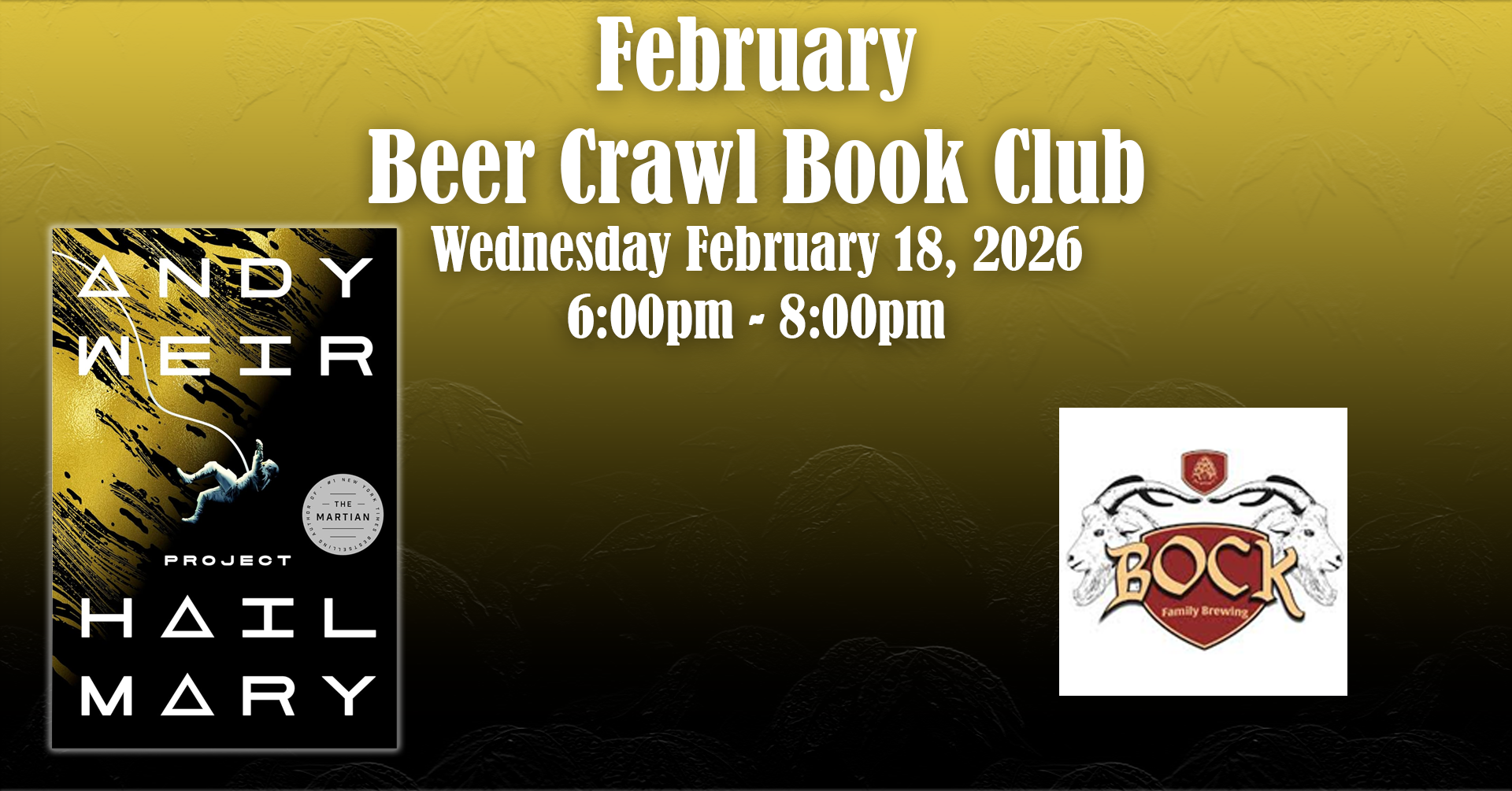 Join us at Bock’s Family Brewing Wednesday, February 18, 2026 as we discuss “Project Hail Mary” by Andy Weir!