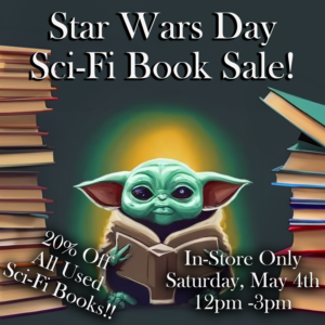 In celebration of Star Wars Day, we’re discounting all used Sci-Fi Books  we carry 20% Off!