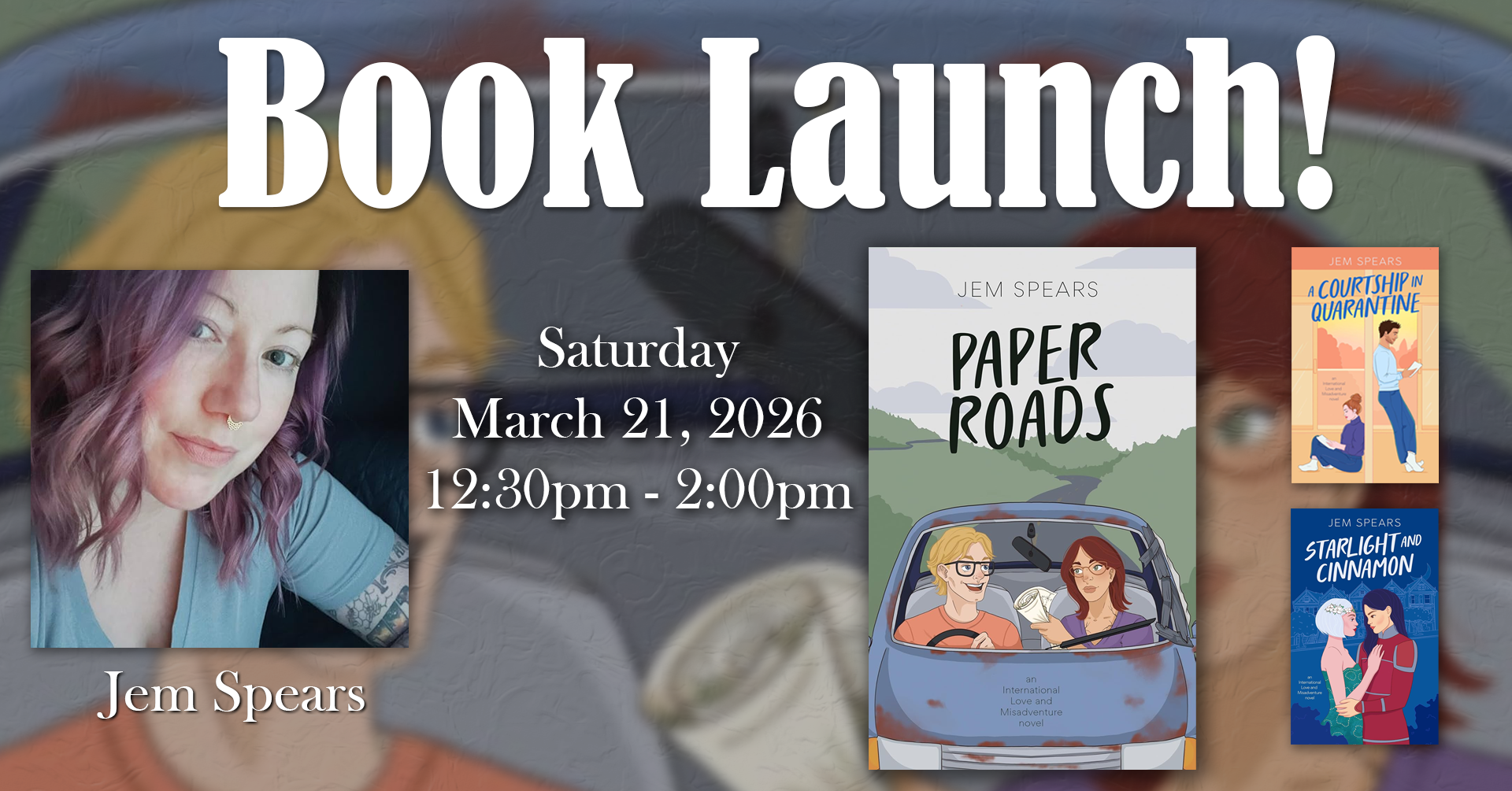 Join us Saturday March 21, 2026 12:30pm-2:00pm as we celebrate the Release of Jem Spears new book, "Paper Roads"! Luke