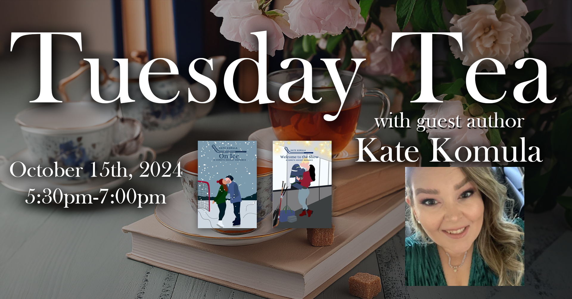 Join us for a relaxing evening of Tea and Reading! Guest author, Kate Komula will be visiting to share her